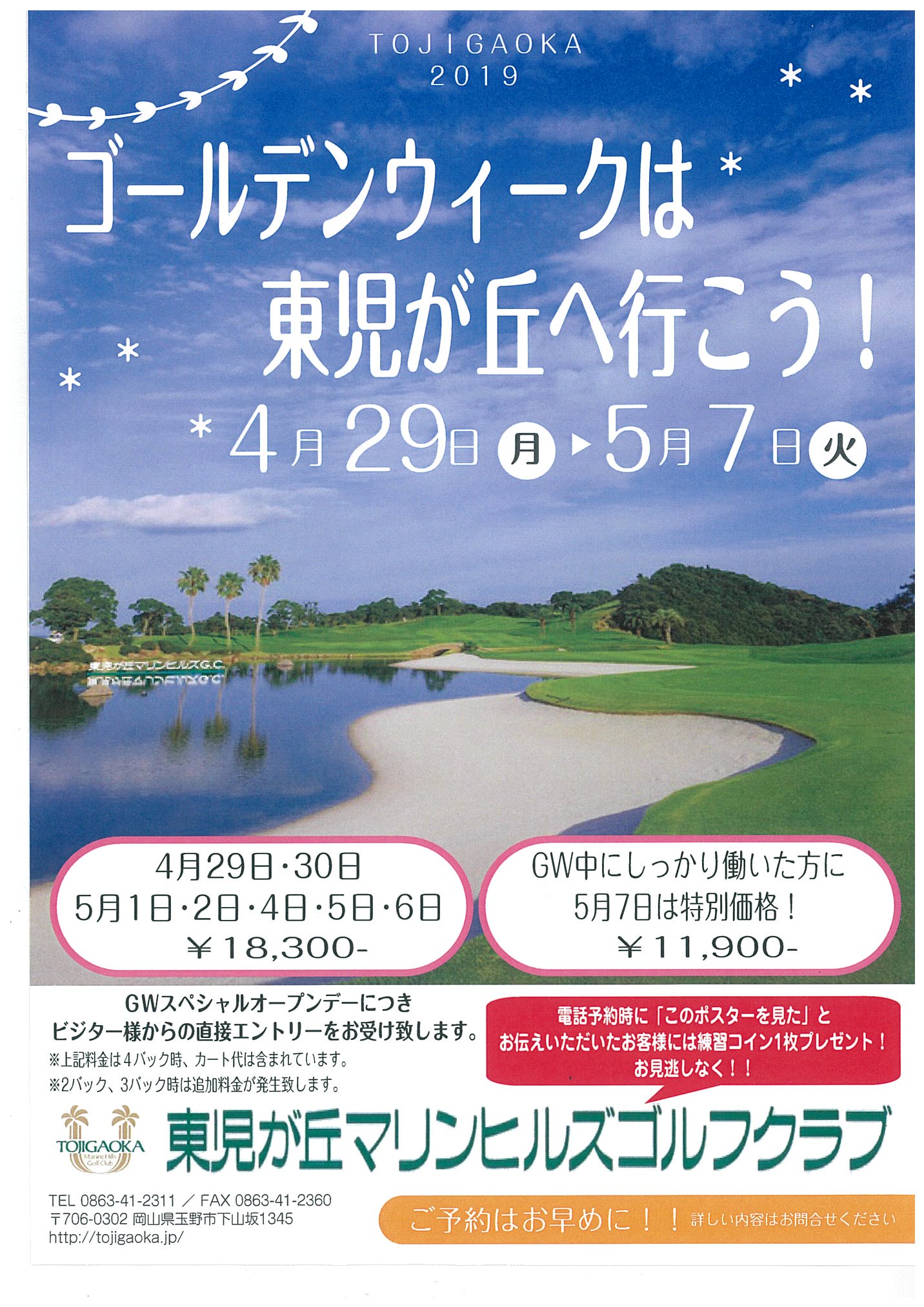 お問い合わせ、お申込みは東児が丘マリンヒルズゴルフクラブに直接お電話下さいませ。